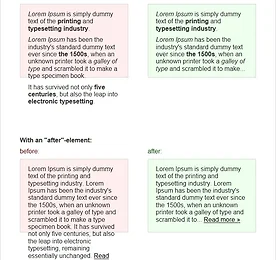 ellipsis 썸네일형 리스트형 Multi-line Text Overflow Ellipsis 출처 : http://dotdotdot.frebsite.nl/ 글이 길어지면 ... 으로 줄이는대 한 줄 일때는 overflow: hidden; white-space: nowrap; text-overflow: ellipsis; 등을 사용하여 표현이 가능한대 여러 줄 일경우에는 표현이 힘들어 진다. 구굴링으로 찾아보았는대 css 로 처리하는것도 있고 jquery 로 처리하는것도 있는대 jquery 로 처리하는게 가장 간단해 보였다. 사용방법은 jQuery.dotdotdot Advanced cross-browser ellipsis for multiple line content. Demo's and documentation: dotdotdot.frebsite.nl Text only: before: Lorem .. 더보기 이전 1 다음